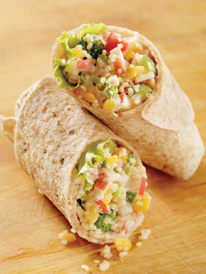 Veggie Wraps: For a simple make-ahead meal, fill a large, whole-grain tortilla (or wrap of choice) with cooked beans, rice or quinoa, and a slew of sautéed harvest vegetables (such as bell peppers, carrots, yellow onion and chopped kale) and top with a handful of nuts and seeds. Wrap into a burrito, and store in a sealed container. Rewarm in an oven or toaster oven when ready to enjoy.